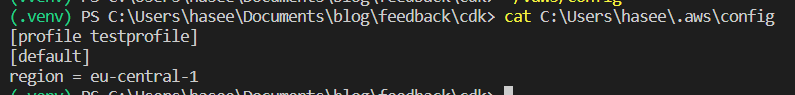If you are unsure what region it was you can check it withcat C:\Users\<MY_USER>\.aws\config: