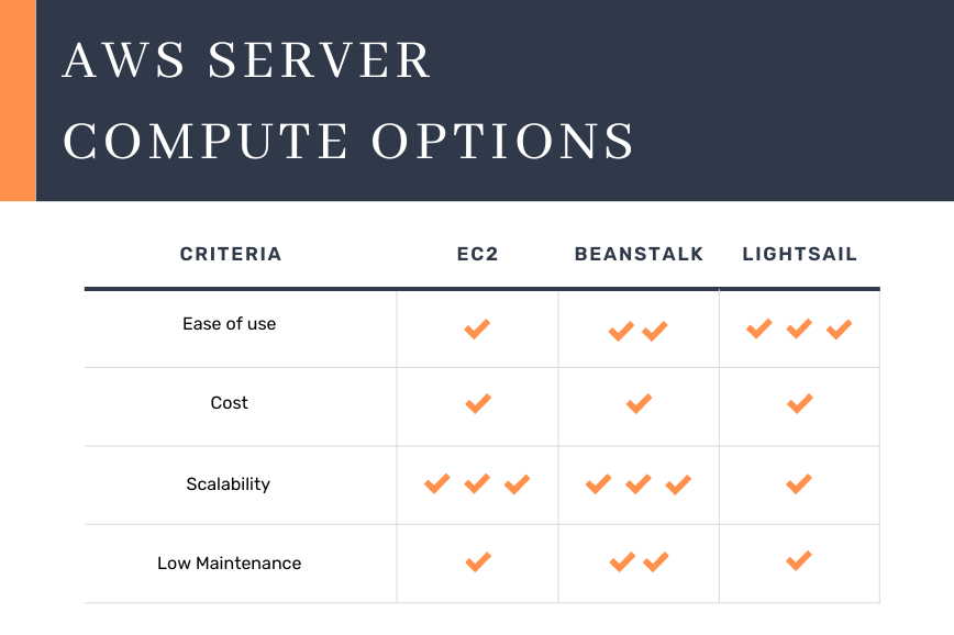 EC2 vs. LightSail vs. Elastic Beanstalk.