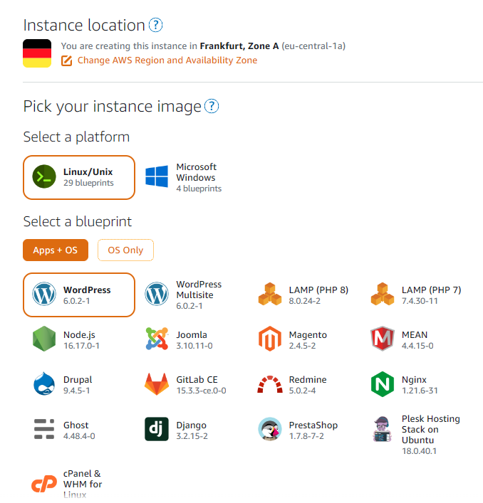 This is also a PaaS like Beanstalk. However the difference is, it comes with a lot of preconfiguration. It is less 'hands-on' offering for instance '1-click- deployments' of Wordpress, the LAMP stack etc. Also, there is no need to manually configure networking, security and databases. It is the quickest and easiest way to get started with AWS. This comes at the cost of reduced flexibility however. Notice in the image above how simpler the interface is compared to EC2 and EBS.
