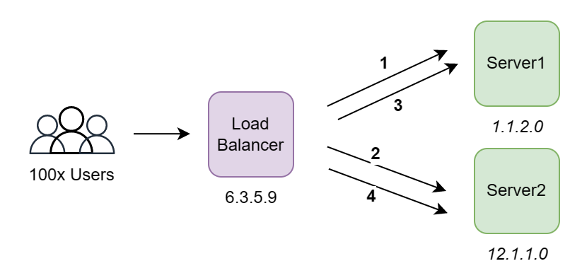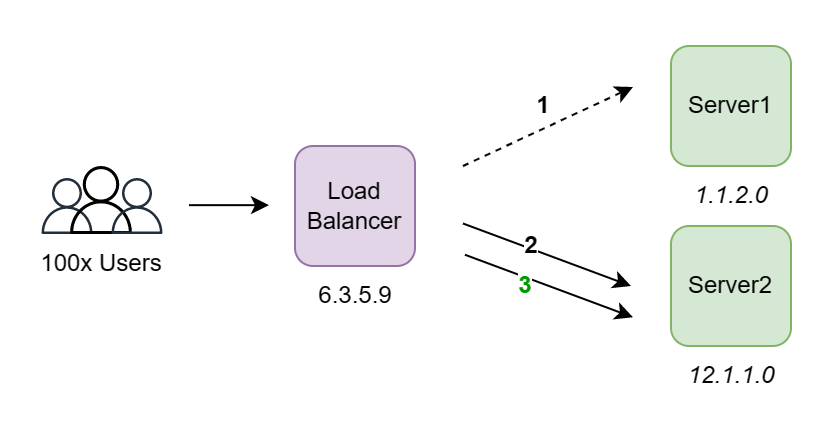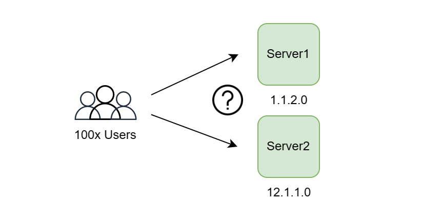 But the problem now becomes that the user doesn't know whether to direct traffic at server 1 with ip 1.1.2.0 or server 2 with ip 12.1.1.0. Furthermore, there is nothing preventing users from directing traffic to server 1. In this case, it would have been a waste to add an additional server and server 1 would still be overloaded.